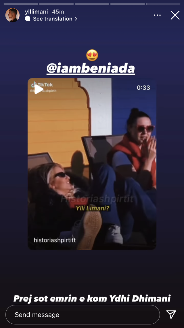 Videos nuk i ka shpëtuar as vetë këngëtari, i cili e ka ripostuar në Story, e duket se e ka marrë me shumë sportivitet. “Prej sot emrin e kom Ydhi Dhimani”, shkruan ai, duke vendosur edhe një emoji me sytë zemra.