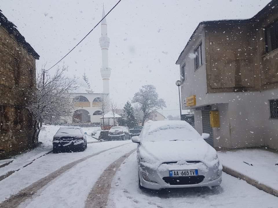 Mëngjesin e sotëm Kukësi është zgjuar i mbuluar nga manteli i bardhë i borës.