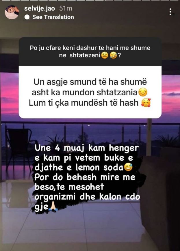 Bashkëshortja e këngëtarit shkroi në një postim tjetër: “Unë katër muaj kam hëngër e kam pi vetëm bukë e djathë e lemon soda”.