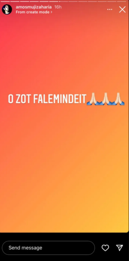 Fatmirësisht nuk ka patur të lënduar dhe Amosi është shëndosh e mirë ndonëse ka pasur dëme të konsiderueshme materiale. Aktori postoi në llogarinë e tij në Instagram fillimisht një story ku shkruan: “O Zot faleminderit”, duke e lënë të paqartë për ndjekësit se çfarë kishte ndodhur.