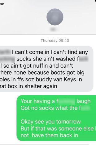 Ken Moore nga Bristol mori një mesazh ku punonjësi i shpjegonte se nuk mund të shkonte në punë sepse e dashura e tij nuk i kishte larë corapet.
