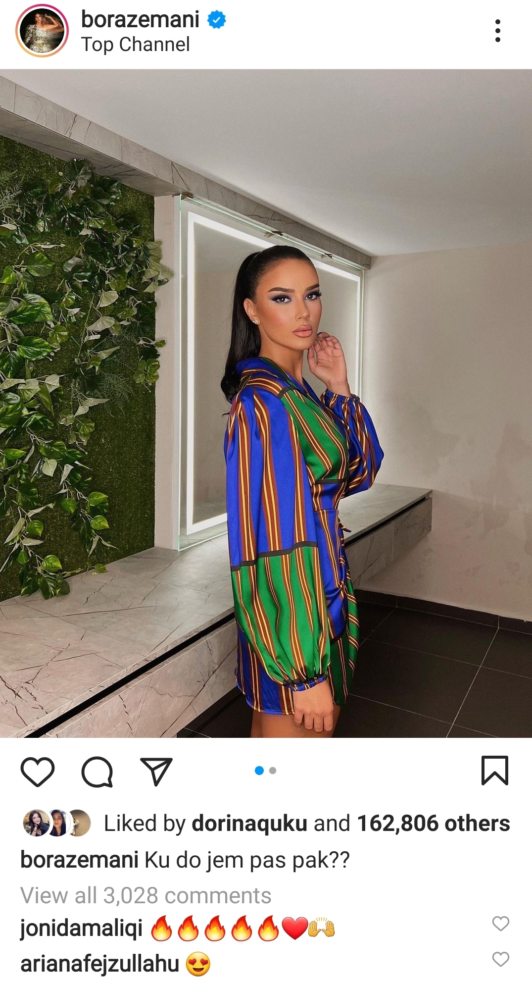 Disa emoji zjarri një zemër dhe një shenjë përkrahje, ishte komenti i Jonidës i cili ka marrë plot 600 like nga ndjekësit.
