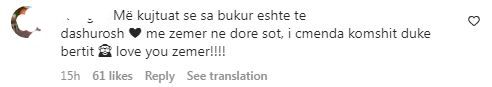 Kujtojmë që ky ishte një koment i bërë nga Ramosaj në një foto të postuar nga Bora Zemani, moment i shkrepur mbrëmjen që bëri bujë të madhe kur zhvilloi takimin me Donald Veshajn në shtëpinë e “Big Brother Vip.”