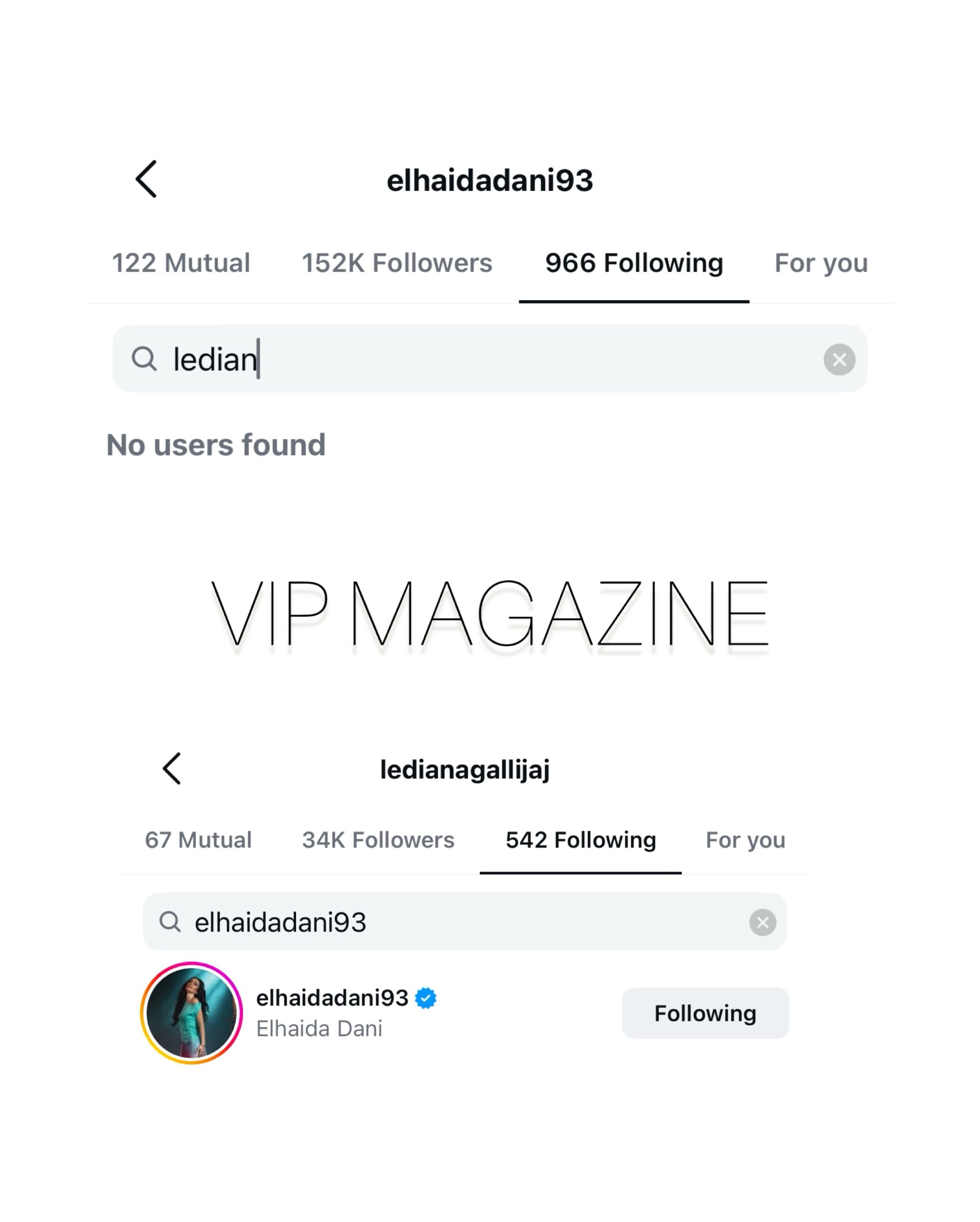 Një krizë në horizont apo një gabim njerëzor? Elhaida Dani nuk e ndjek partnerin e saj, Ledian Agalliaj në instagram.