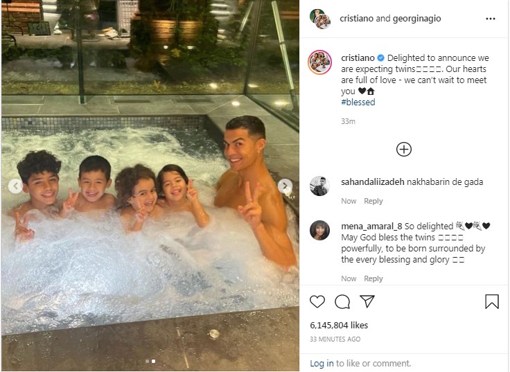 Cristiano Ronaldo dhe partnerja e tij, Georgina Rodriguez do të behen prindër sërish. Lajmin e bukur e ka konfirmuar vetë çifti përmes një foto të publikuar në Instagram.