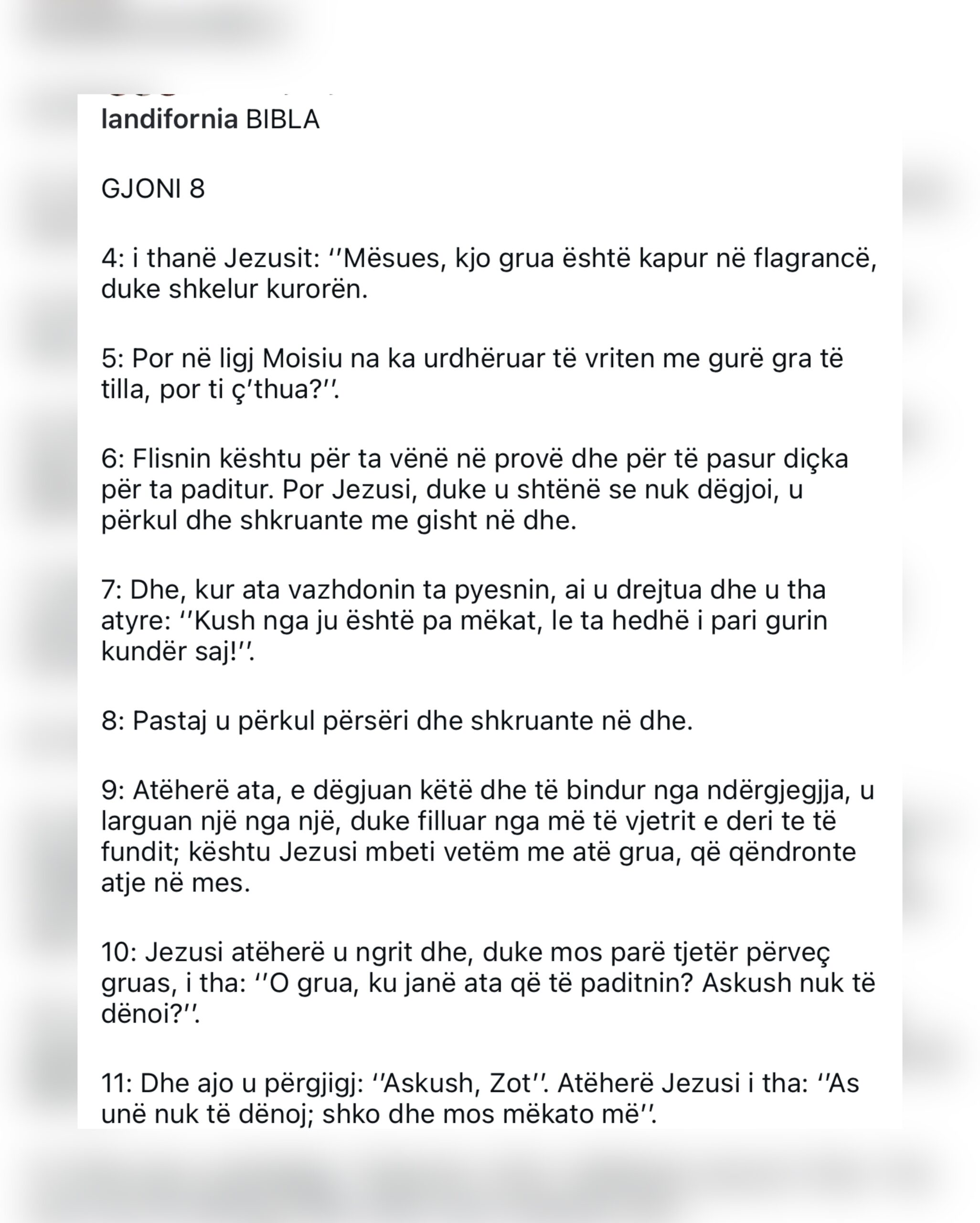 Përmes një postimi në rrjete sociale, Landi ka zgjedhur të përgjigjet në mënyrë indirekte ndaj sulmeve, duke publikuar një fragment nga Bibla, Ungjilli sipas Gjonit (8:4–11), pjesa e njohur ku Jezusi thotë: “Kush nga ju është pa mëkat, le ta hedhë i pari gurin kundër saj.”