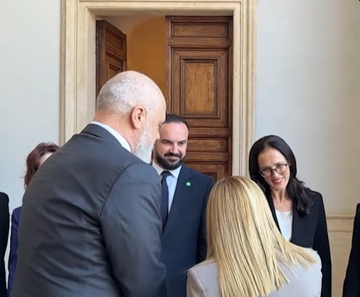 Të kapur për krahu, Rama dhe Meloni zbresin një e nga një shkallët në Villa Doria Pamphili