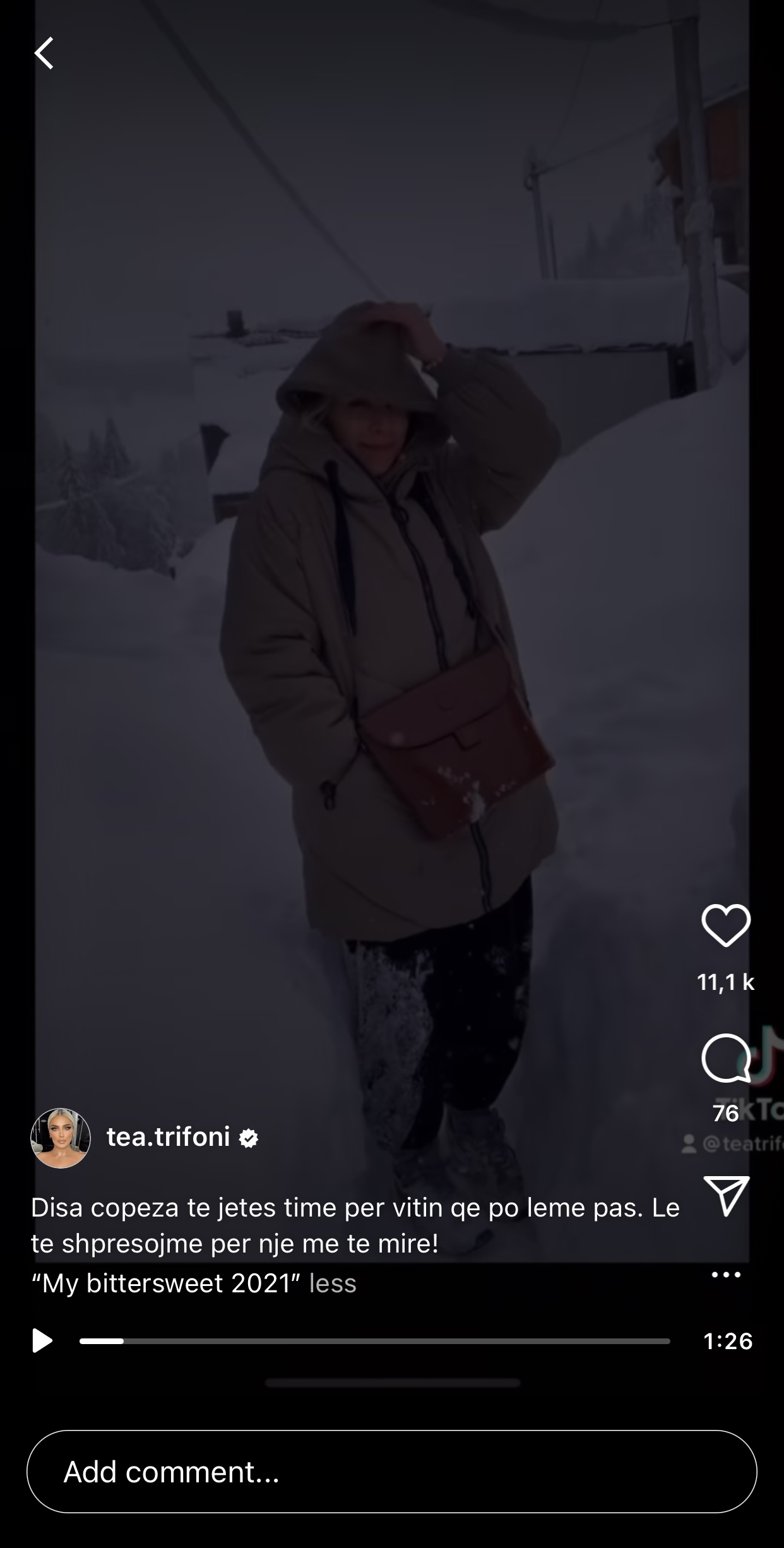 Ajo ka publikuar së fundmi një video me kujtimet e saj për vitin 2021 dhe habiti ndjekësit se mes videove të shumta ka vendosur edhe videon e famshme në mes të borës ku konfirmuan edhe lidhjen e shumëpërfolur.