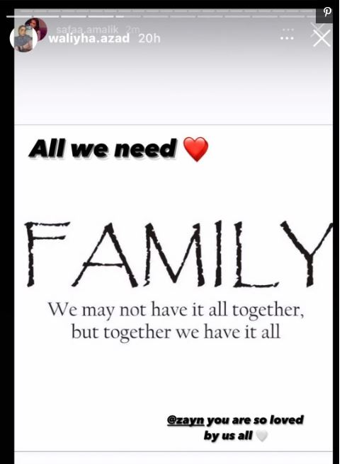 “Zayn të duam të gjithë (shoqëruar me emoji me zemër të bardhë)”, shkroi ajo, duke postuar dhe citime emocionale për rëndësinë e familjes.