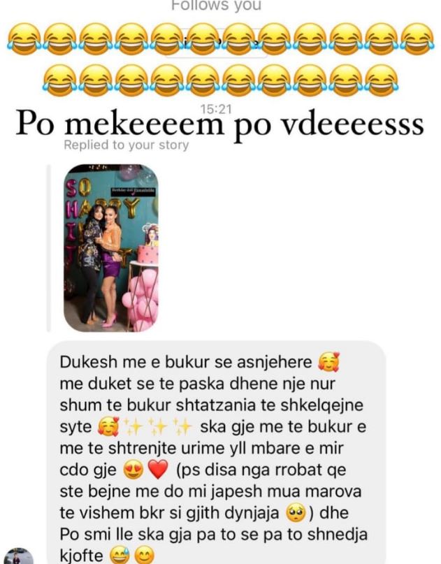 Ditën e djeshme, ajo publikoi një foto në Instastory ku shfaqej duke pozuar me një nga mikeshat e veta, me rastin e ditëlindjes së saj.