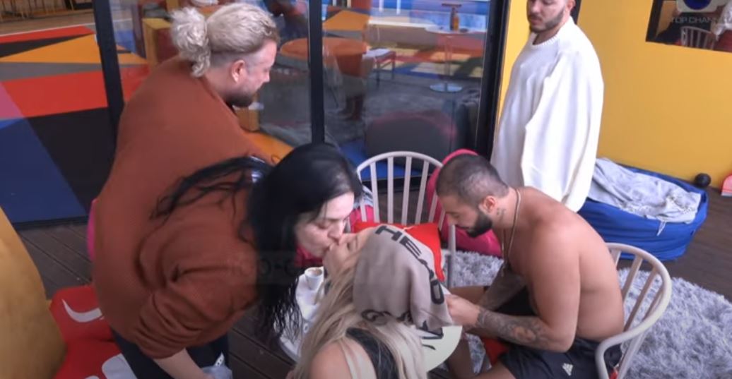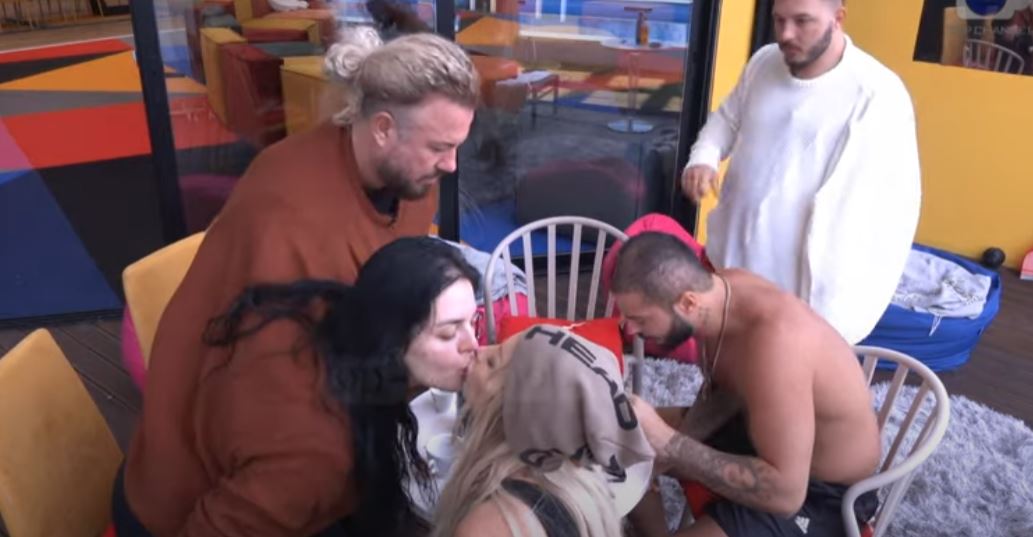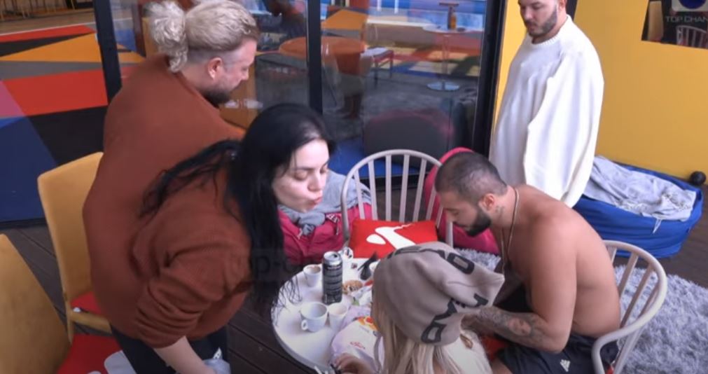 Fifi dhe moderatorja u puthën në buzë në oborrin e shtëpisë së Big Brother, në prani të modelit, Sabianit dhe Ardit Çunit.