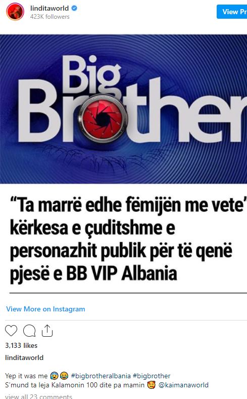 “Isha unë”, shkroi Lindita Halimi krahas një lajmi ku flitej “për pesonazhin plublik që bëri kërkesën e çuditshme për të qenë pjesë e BB”.