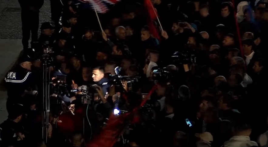Qytetarë të shumtë, në shenjë revolte kane hedhur bojë të kuqe drejt kryeministrisë, ndërsa policia filloi edhe shoqërimet e para të protestuesve.