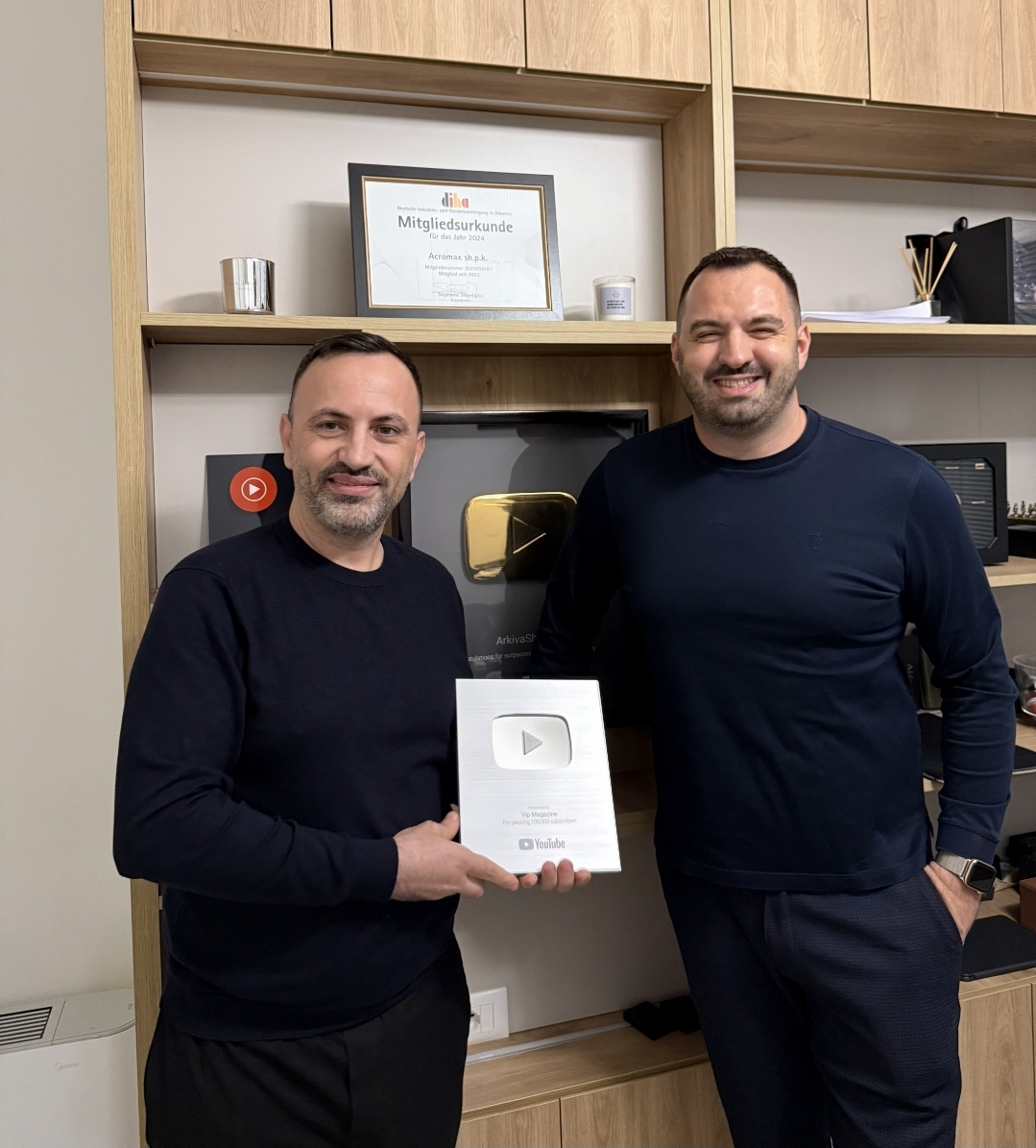 Bashkëdrejtuesi i “Vip Magazine”, Gurjan Doçi u takua me drejtuesin e Acromax Aldor Nini, i cili i dhuroi butonin që YouTube ka dërguar pranë kompanisë sonë të menaxhimit.