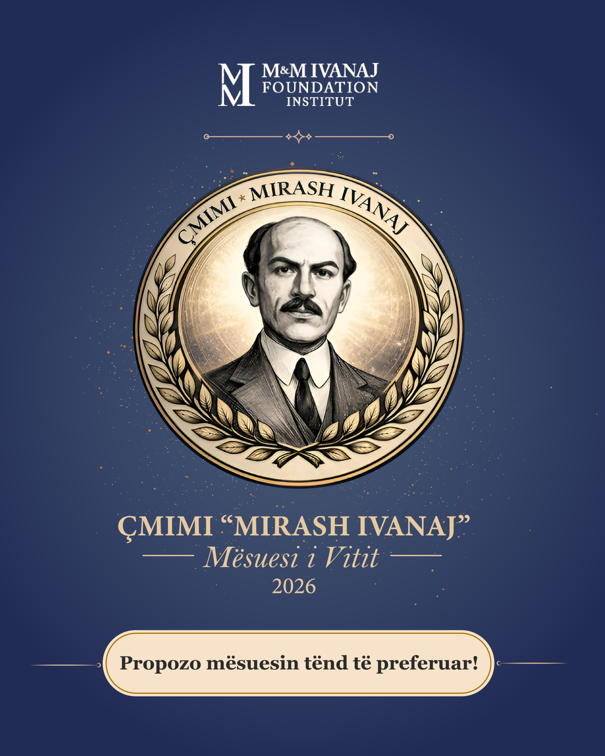 Fondacioni M&M Ivanaj Institute sjell edicionin pilot 2026 të Çmimit “Mirash Ivanaj – Mësuesi i Vitit” në Tiranë. Iniciativa synon të vendosë mësuesit përsëri në qendër të vëmendjes publike, duke ju njohur përkushtimin, etikën dhe ndikimin në formimin e brezave.